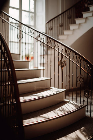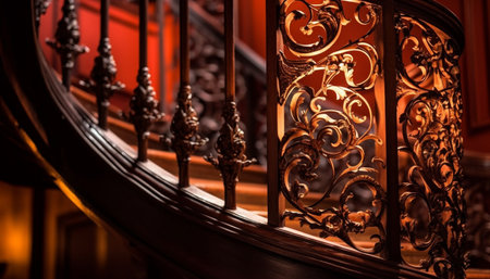 Antique wrought iron staircase showcases elegance and history indoors generated by artificial intelligence