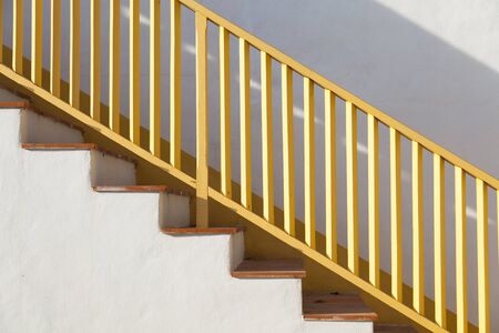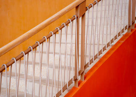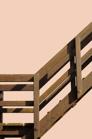 Wooden railing on the stairs as a background .