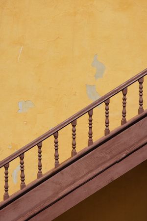 Metal stairs on the big orange wall