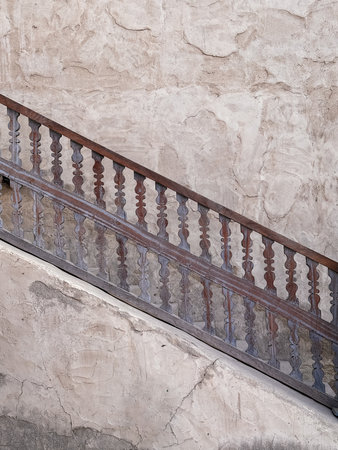 A fragment of the interior of an old building, a staircase railing