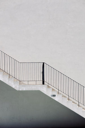 Stainless railing on white concrete wall