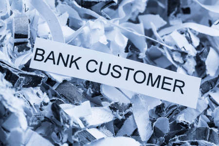 Economy and finance concept. On a white background, coins, a dollar symbol and figures of businessmen who look at a wooden plate with the inscription - BANKING SERVICES