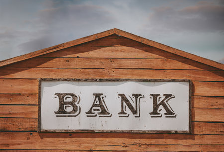 Bank Sign over Entrance Door in Black and White Sepia Tone