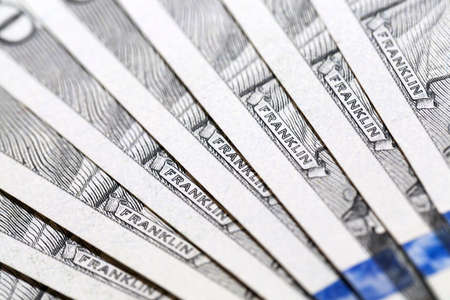 Close up of one hundred dollar banknote. Shallow depth of field.