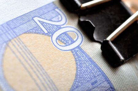 There are a few rolled-up paper money placed on the old paper chessboard. This money is the currency of the EUR.