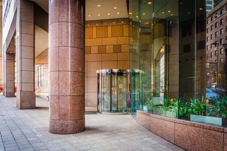 Entrance to a modern building in downtown Baltimore, Maryland.