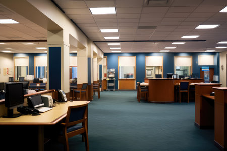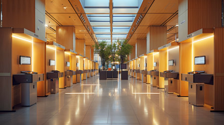 Modern empty polling station with electronic voting booths. Concept of high tech elections, transparent democracy, accessible voting, efficient electoral systems, advanced voting technology, and civic participation.