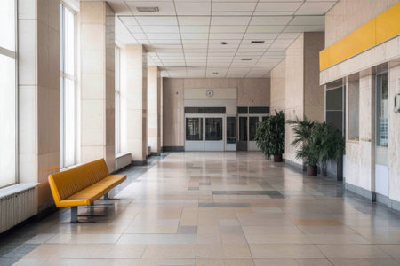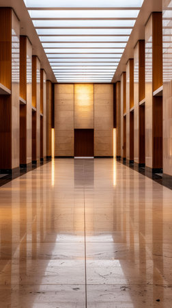 A sleek, modern corridor with polished flooring and warm wooden accents, creating a sense of elegance and tranquility.