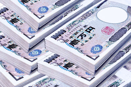 Japanese Yen Banknotes close up shot and stack layers. japanese currency. financial and economy money concept.