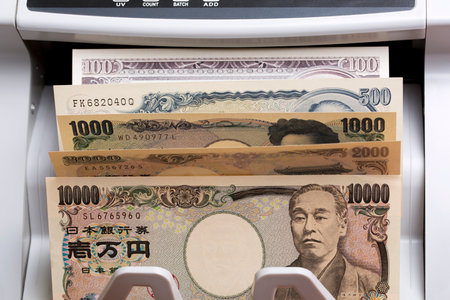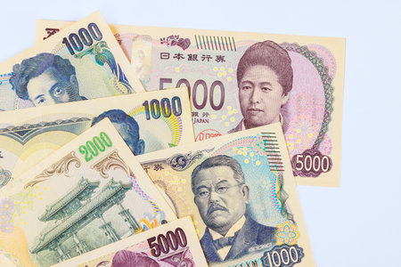 Japanese paper currency, the background of Japan's money. Asian business, sales, insurance, taxes