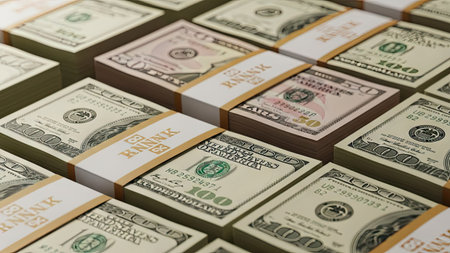 ai generated illustration collection of money stacks of 100 US dollar banknotes that make up a large portion