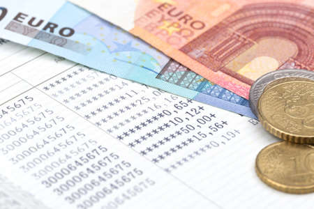 Bank statement and Euro coin