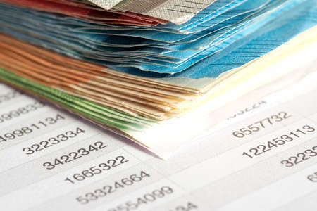 Numbers printed on paper report for business bills and fees