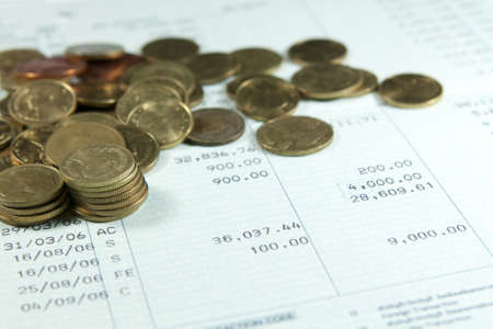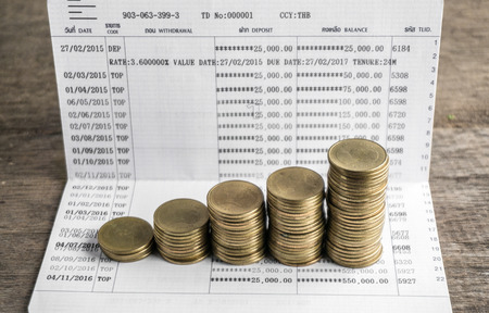 Bank statement with Stacks of coins, investment and saving concept
