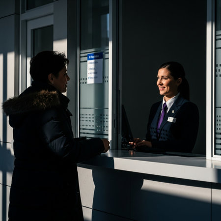 Cinematic silhouette of a customer and bank teller interacting positively through a service window,