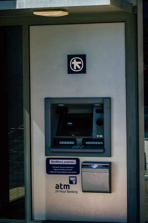 Limassol Cyprus March 11, 2020 View of an ATM in the streets of Limassol in the afternoon