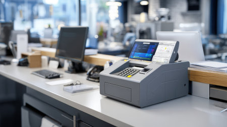 Close view of a compact desktop cash counter integrated with advanced sensors streamlining cash management in a busy business setting