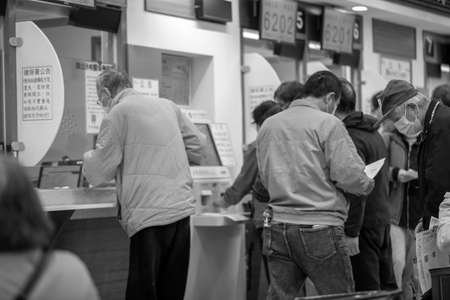 April 01, 2020, Taipei, Taiwan, National Taiwan University Hospital, people who go to the hospital to receive medicines will wear masks