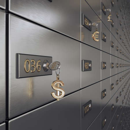 Unlock safety deposit boxes in bank. Business and finance concept. 3D Rendering