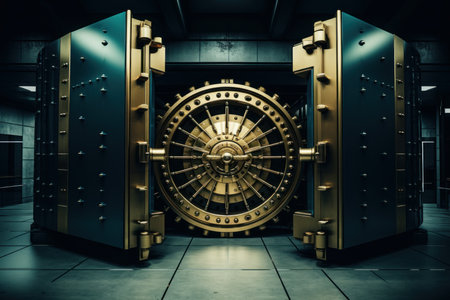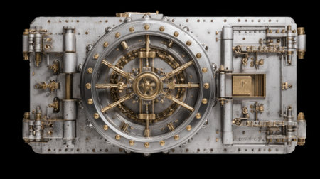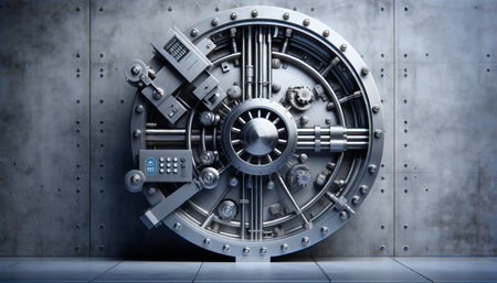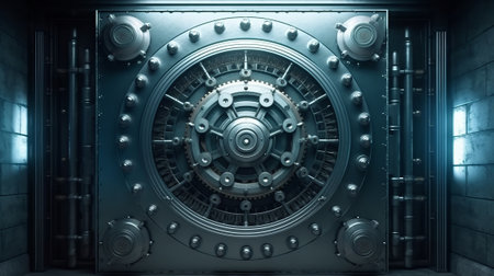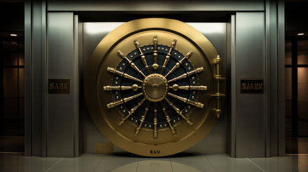 Front view of closed bank vault door. Generative AI illustration