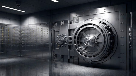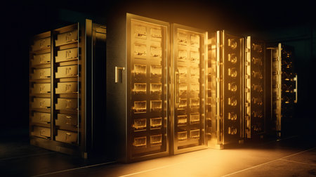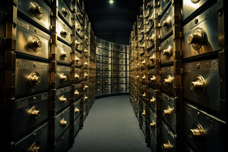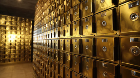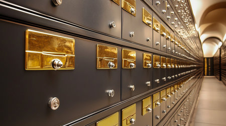 Rows of luxurious safe deposit boxes in a bank vault