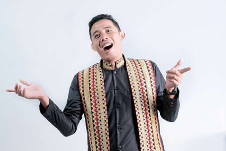 Portrait of a handsome young asian muslim man wearing traditional clothes