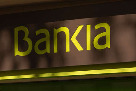 Madrid, Spain - May 18, 2020: Main facade at the entrance to the bank office of, Bankia, in the Retiro district.