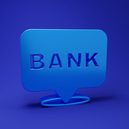 Blue Bank building icon isolated on blue background. Minimalism concept. 3D render illustration.
