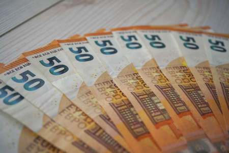Cash in 50 euros as currency in banknotes as means of payment in Europe