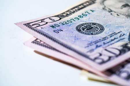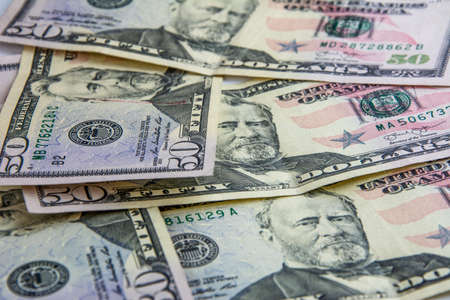 Fifty dollars banknote, isolated on black background, place for inscription. 2019