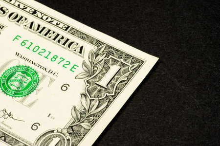 1 dollar bill on a dark background. Close up. The concept of saving money