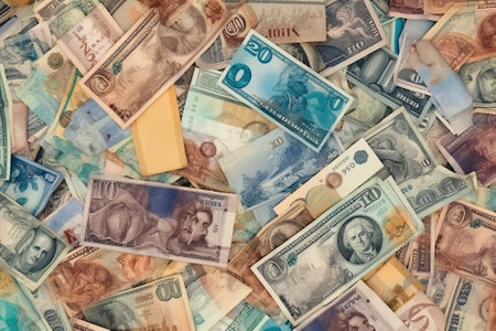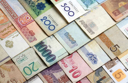 Money background, currency exchange, paper banknotes from different countries. Money cash currency as a financial background for your design
