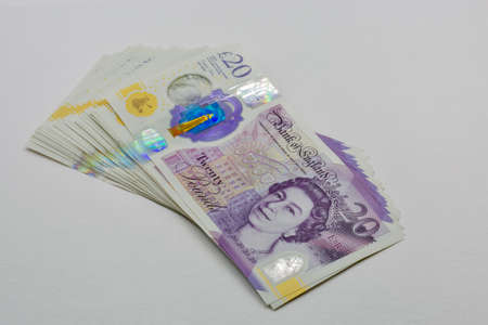 Britain paper money, pound sterling, cash banknotes for financial and business transactions. Britain money as a background for your design