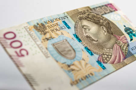 Polish money. Several different Polish zloty banknotes placed next to each other, constituting the background for financial matters. PLN currency.
