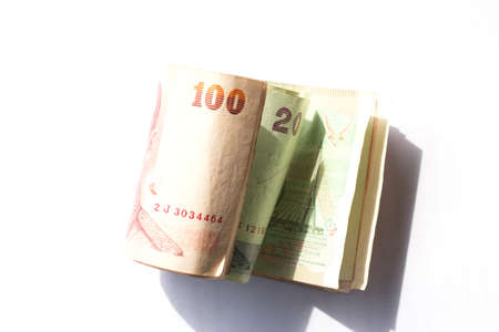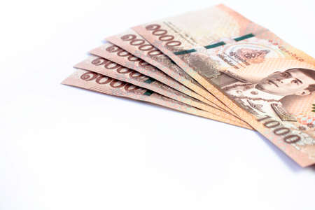 money banknote thai 1000 baht on white background, savings money and financial business concept, copy space