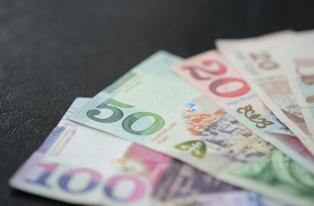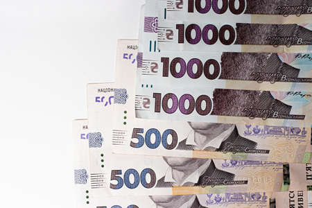 Ukrainian money on a white background. A thousand and five hundred hryvnia bills.