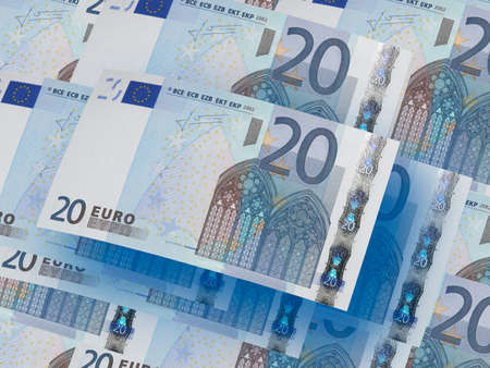 Euro banknotes background. Money of European Union. 20 Euro pattern