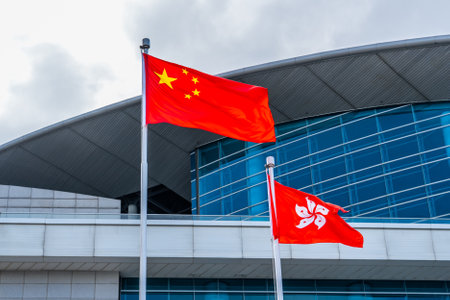 Flag Republic of China and Hong Kong Special Administrative region, the background of city buildings