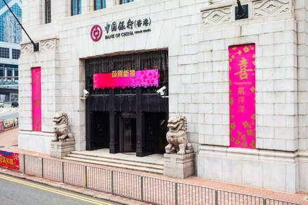 Hong Kong, 2018-03-06: Office building Bank of China with sign.