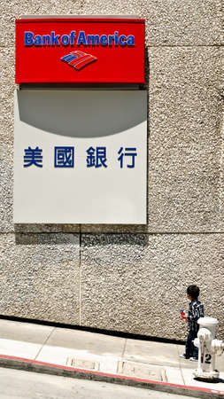 Summer 2011, San Francisco Chinatown, Sign Bank of America in Chinese and litle boy on the right