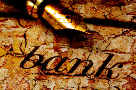 Abandoned, decaying bank building with broken windows and crumbling facade, symbolizing financial collapse. Generative AI
