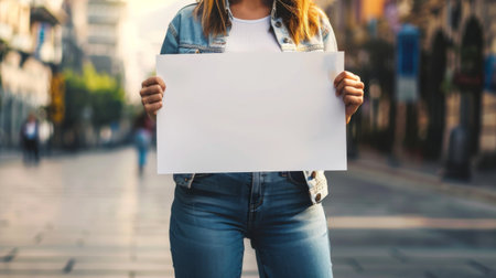 Groups of happy women holding a blank white banner symbolizing women's empowerment on International Women's Day.
