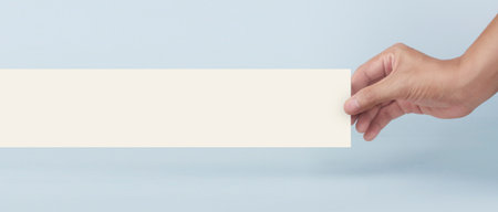Leave your message here. Shot of a person holding up a blank page against a dark background.