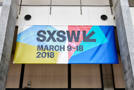 South by Southwest Annual music, film, and interactive conference and festival in Austin, Texas. SXSW sign in Austin Convention Center