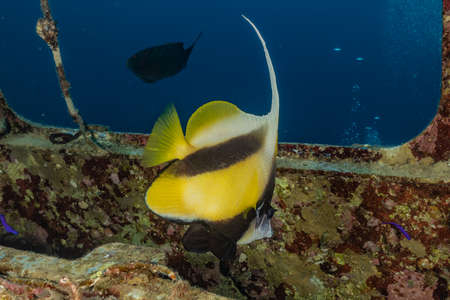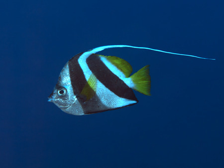 Closeup view of a Pennant coralfish Heniochus acuminatus