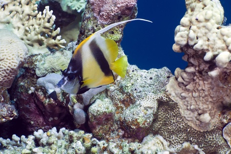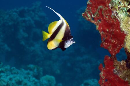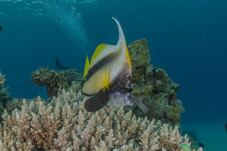 Red Sea bannerfish (Heniochus intermedius) on Coral Reef, Red sea