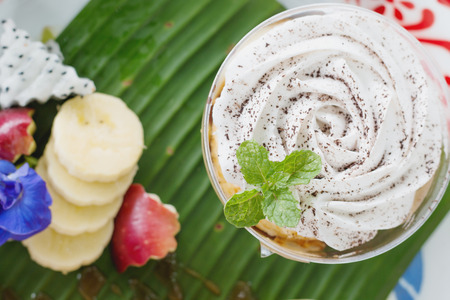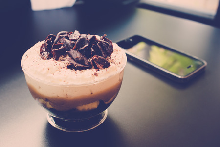 chocolate ice cream of coffee shop on summer,vintage tone.