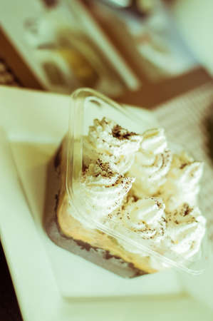Rakvic, Little Coffin cake on a plate. Traditional Czech dessert cake with cream