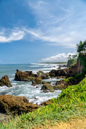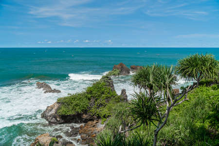 Amazing view of Yogyakarta seascape with natural coastal rock as foreground