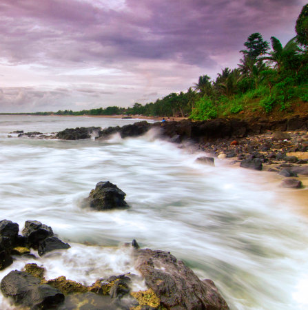 seascape is very beautiful with coral rocks and sea water that looks very soft like cotton. slow shutter speed effect
